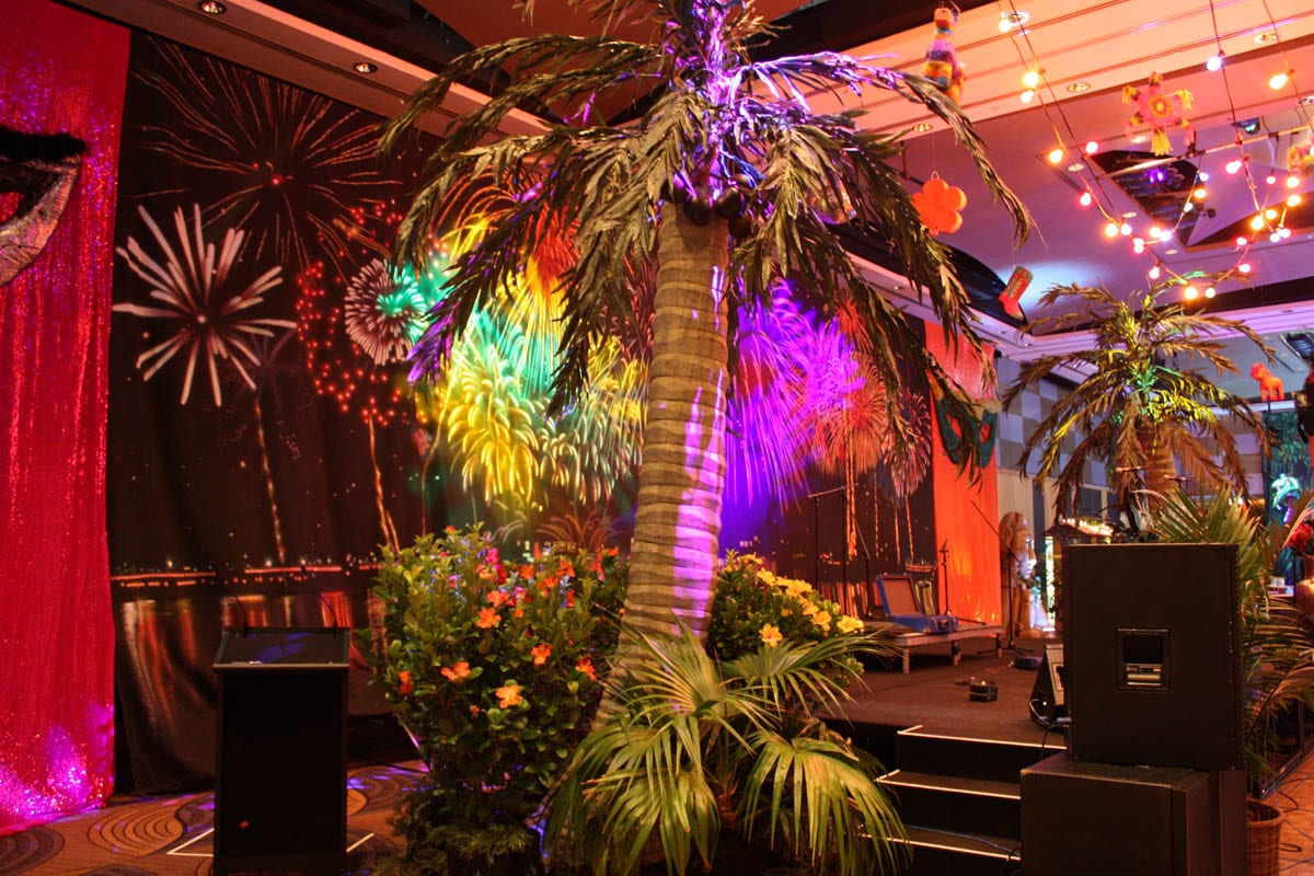 Our Hawaiian Theme combines jungle, beach, retro, 70s, tiki and nautical themes all in one. Use our impressively large tribal tiki statues to add great effect, palm trees, hawaiian flowers, lees, bamboo bars and bamboo torches to transport you to the islands of Hawaii. Go to Maui, visit Oahu or trek through the jungle of big island Hawaii and discover this great theme!.