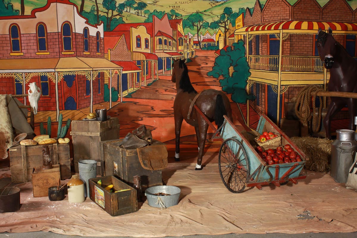 🎨 Hand-Painted Backdrops – Stunning shopfronts, hitching rails, and sun-drenched verandahs that look like they’re straight off a movie set.