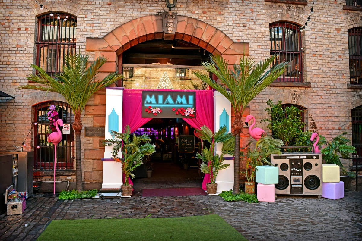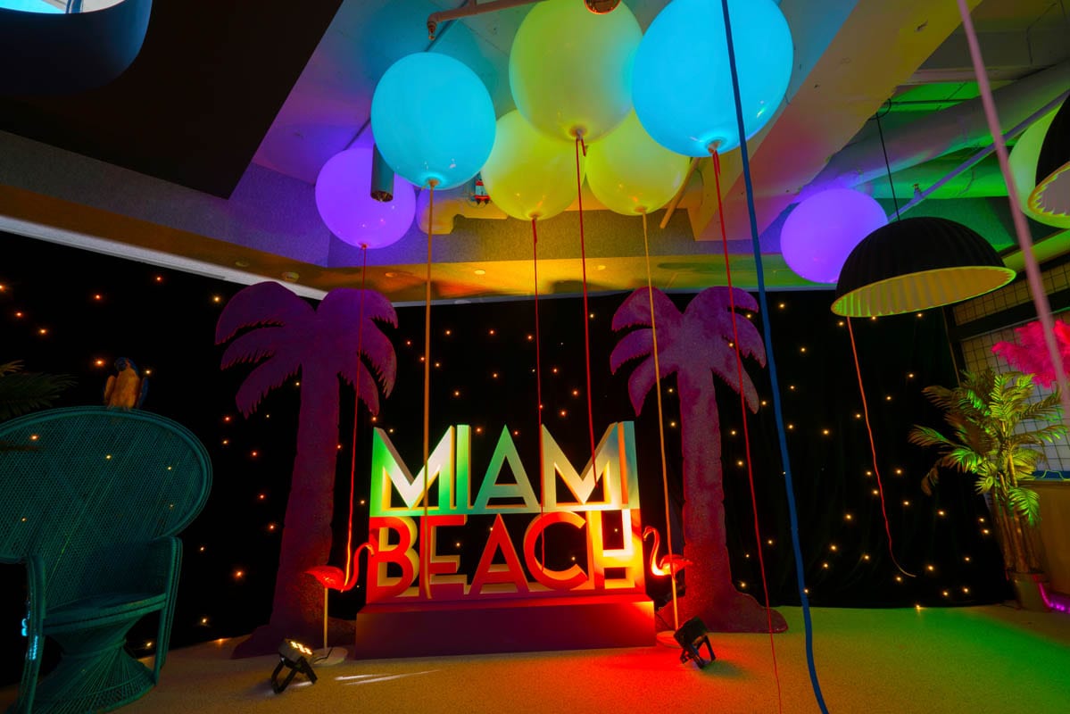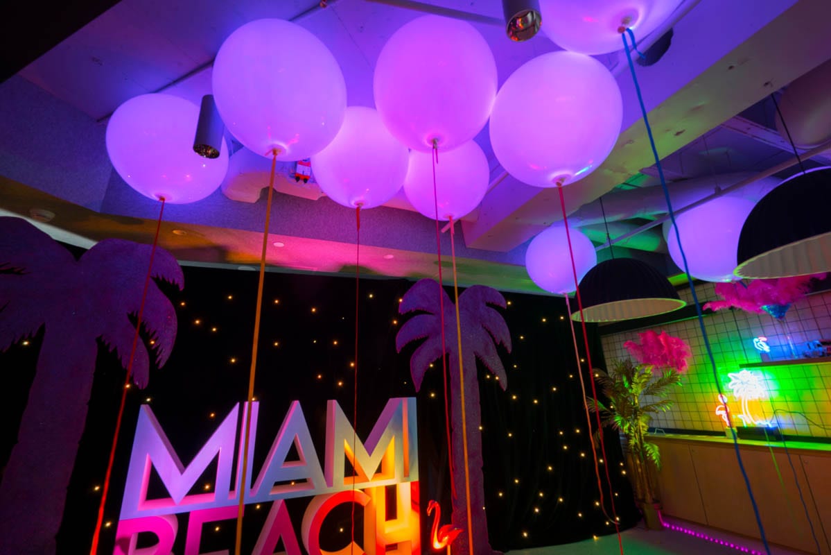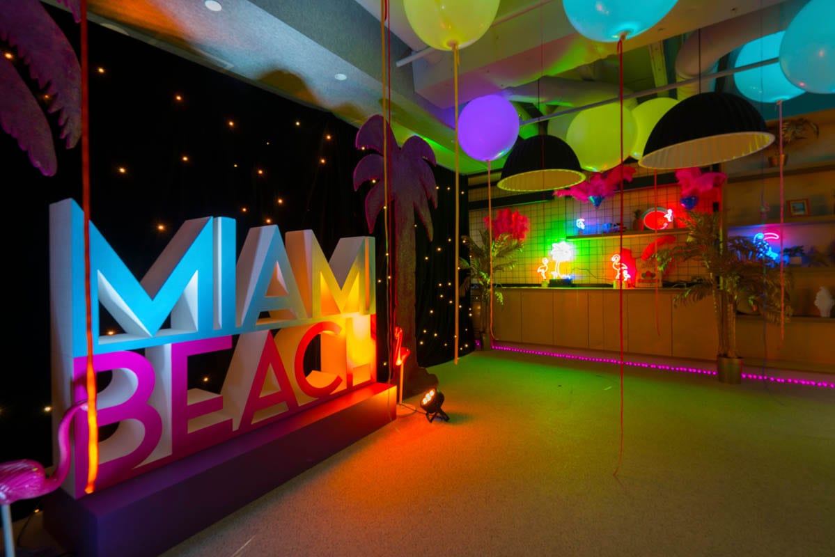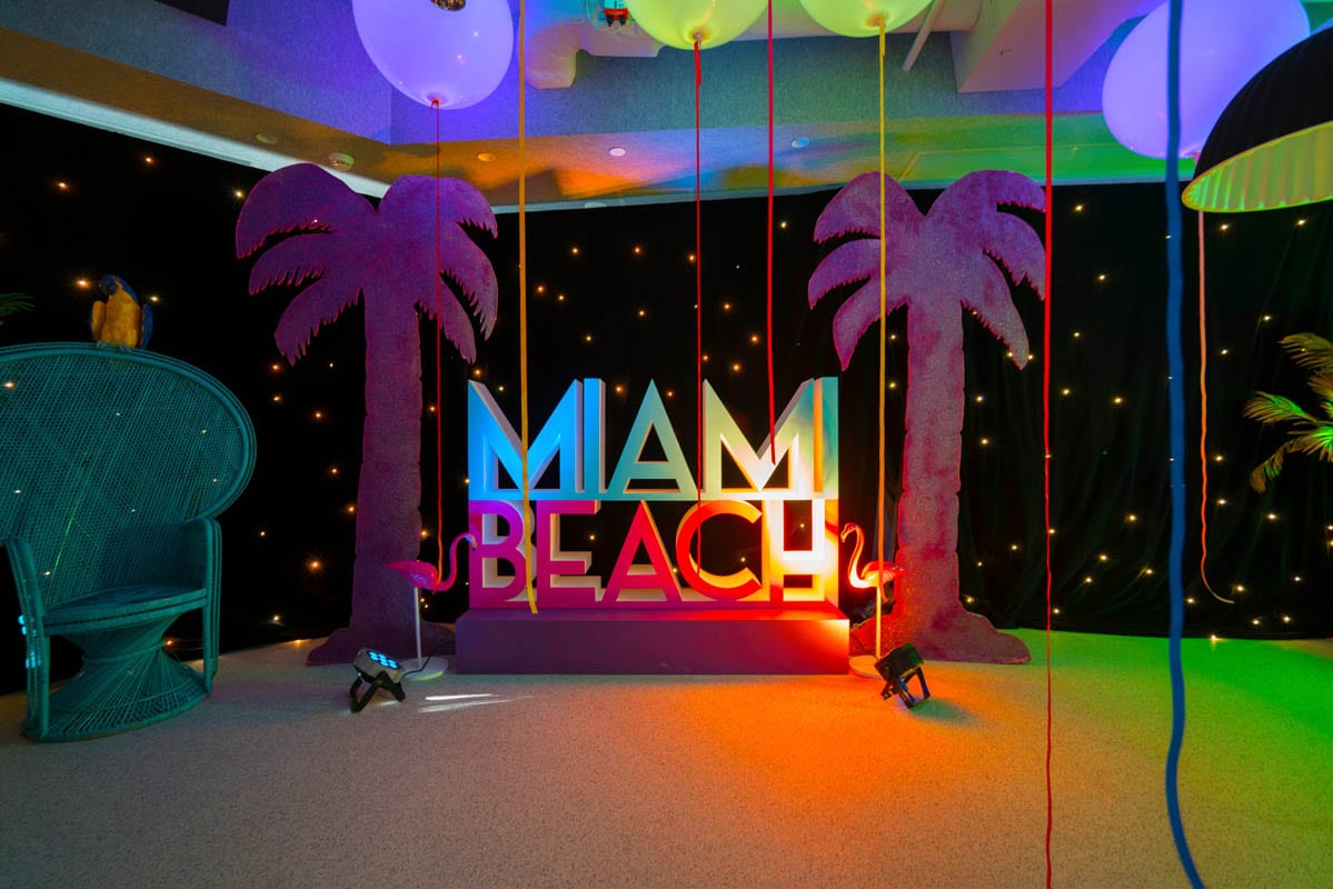 Fancy sipping on a pina colada whilst watching the glowing strip of the iconic Ocean Drive in the heart of Miami? If you’re a fan of Miami Vice or just plain old love this beach, Sydney Props will transport you to paradise with this theme!