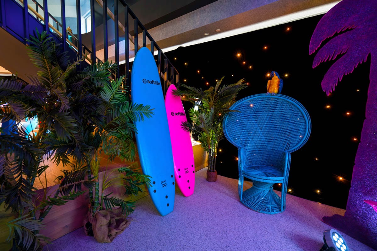 Begin summer fun with this coastal resort inspired theme incorporating both beach, art deco and lights to recreate the famous Miami Beach. First start by creating the famous strip at night with tropical neon lights and signs. Ensure there’s plenty pops of colour especially pink and some razzle dazzle palm trees and art deco pieces. Think cafe seating, bars and nightclubs! Then head down to South Beach for some people watching including the roller skaters and the people scantly clad in their swimsuits. Sit down on a peacock chair or deck chair and look over towards Biscayne Bay. Create the beach with our range of beach props including our lifeguard chair, beach umbrellas and palm trees – and finally you will feel like you’re on holidays in Florida!