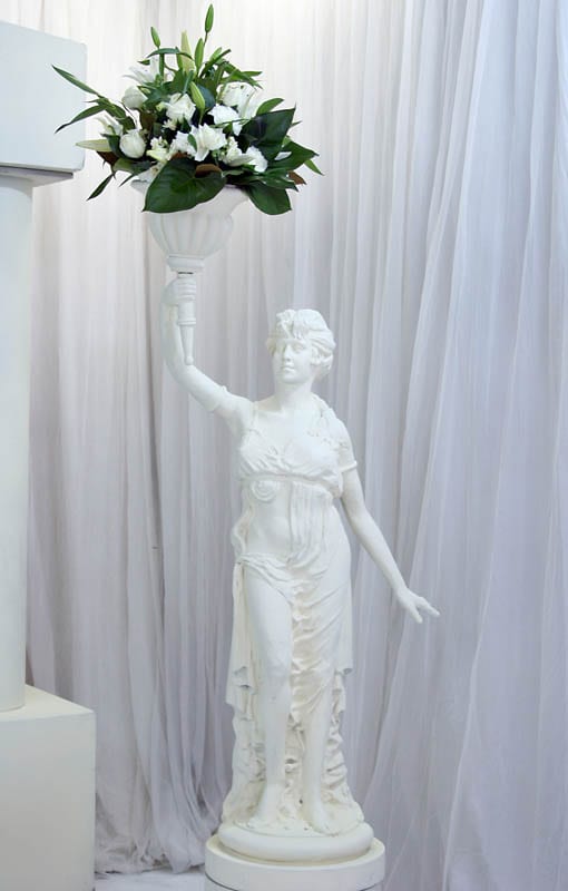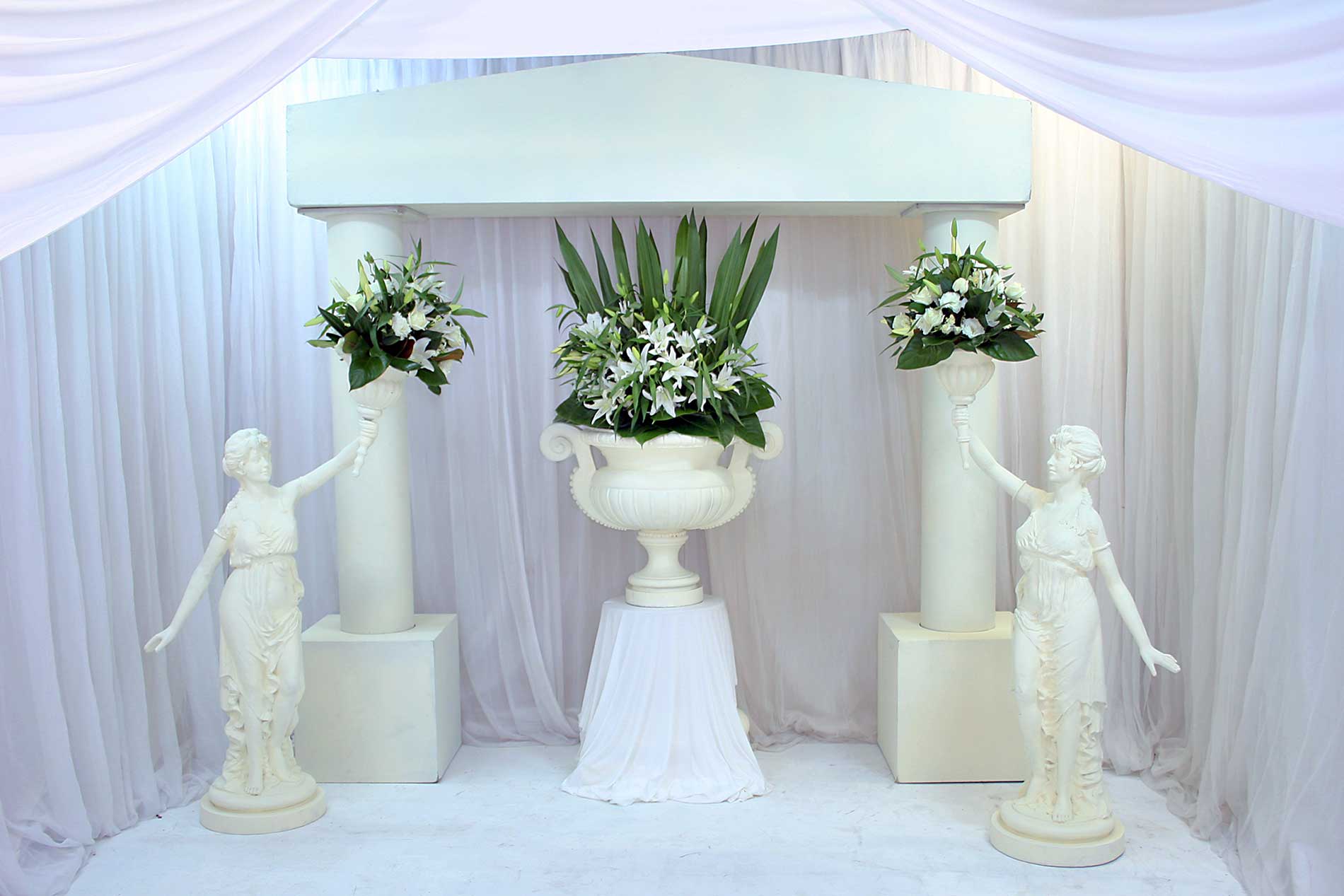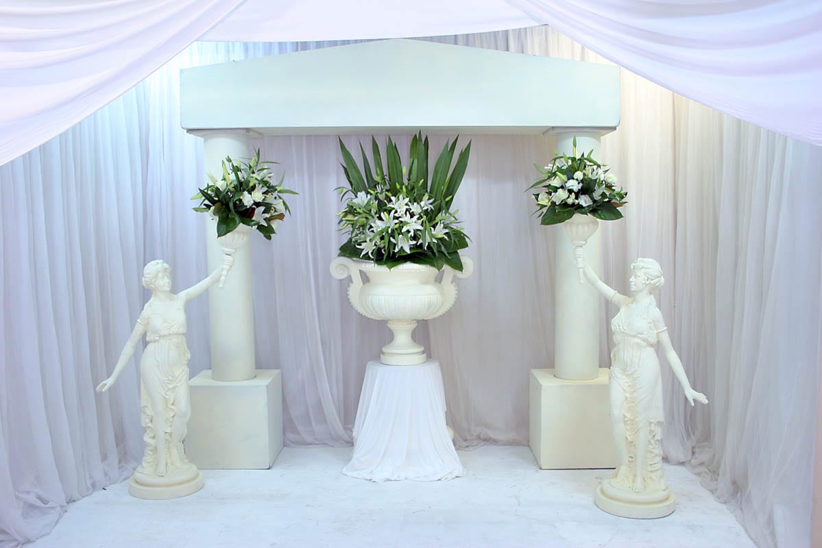 We can create elegant white chiffon filled rooms with white giant props such as our white ornate throne, cinderella slipper, fountain, garden arch and giant urns to create the white look you are after. Use our white statues to create an elegant, classic look or for a modern twist hire out glow furniture including a bar, cocktail tables and cubes. Light the room with colours to enhance the whiteness and create some drama!