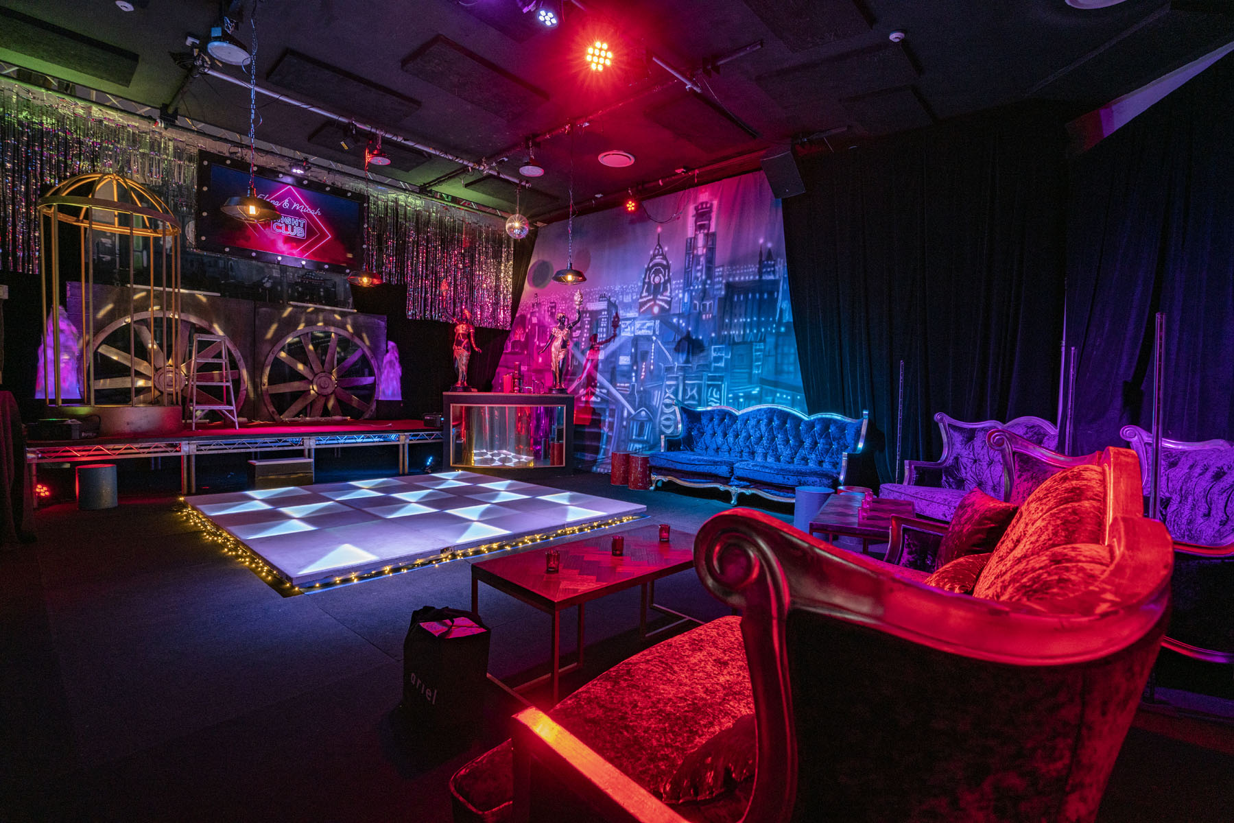 Our Nightclub Theme mixes industrial underground with Great Gatsby chic.