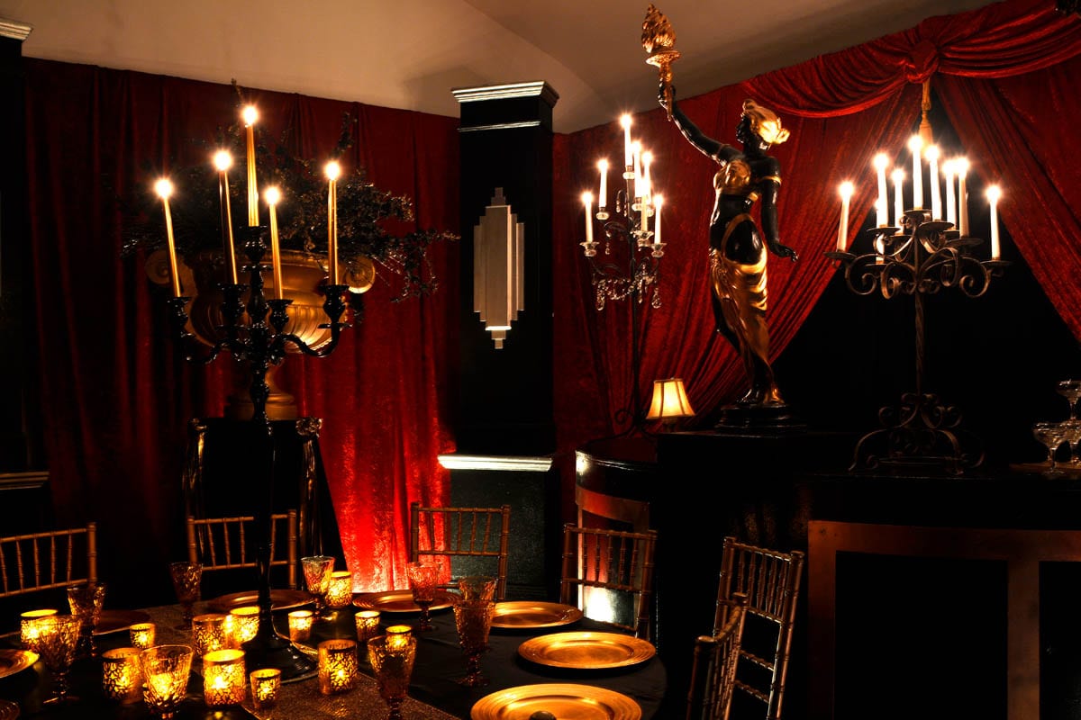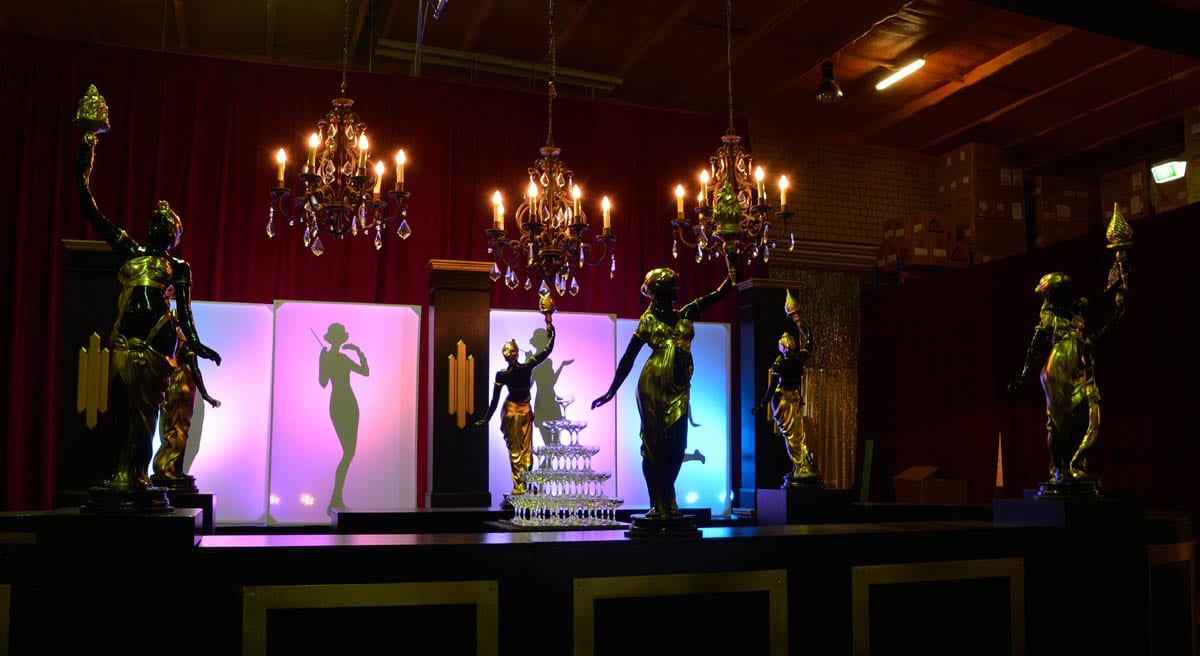 Use props from our Prohibition Era Theme to create a dark majestic club and bar, with flappers, art deco features and draping. You can also recreate a distillery with our alcohol still and barrels, or create a gangster hideout with our range of cutouts and backdrops.