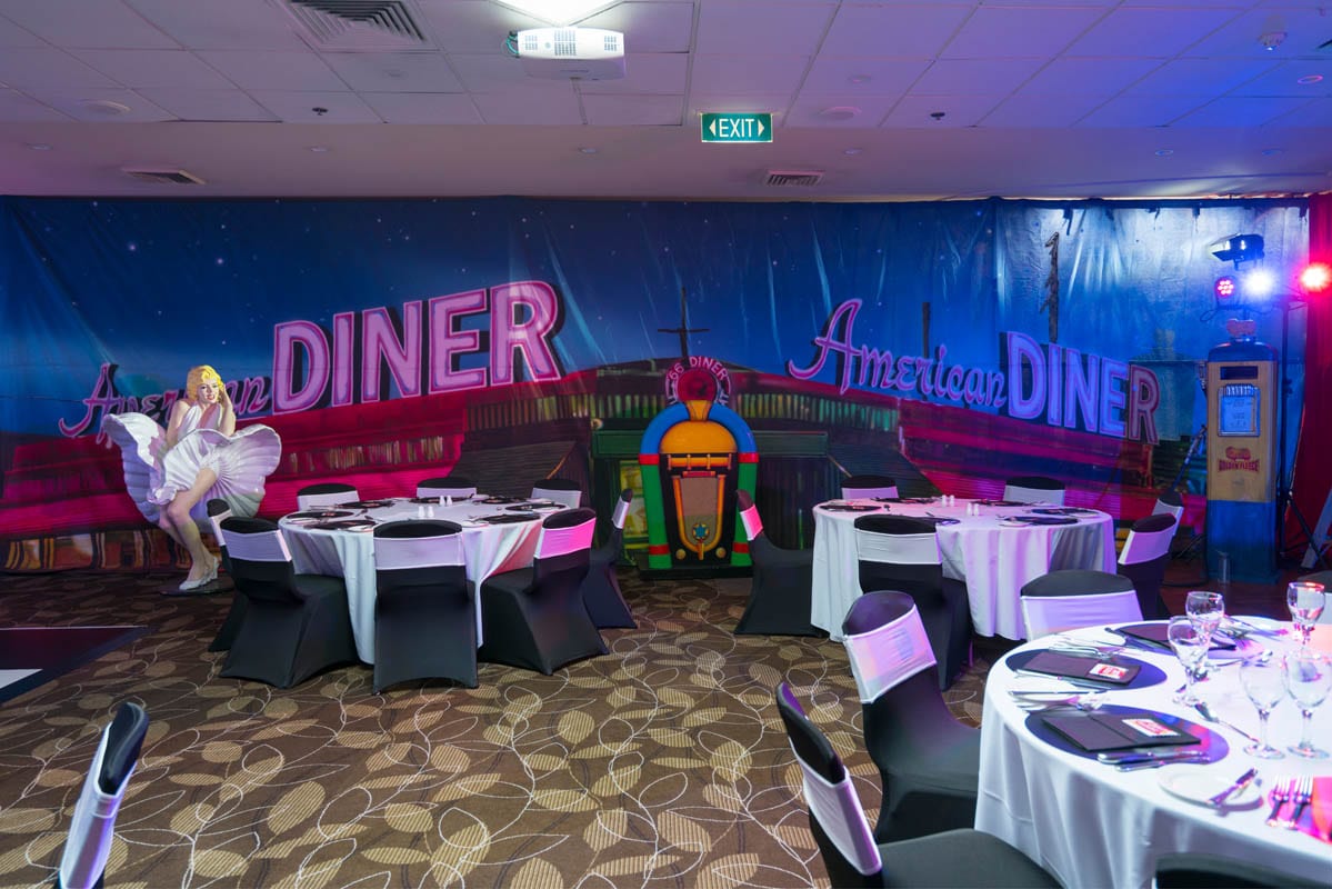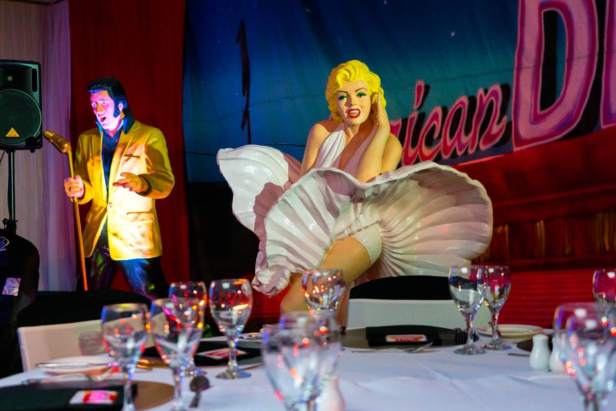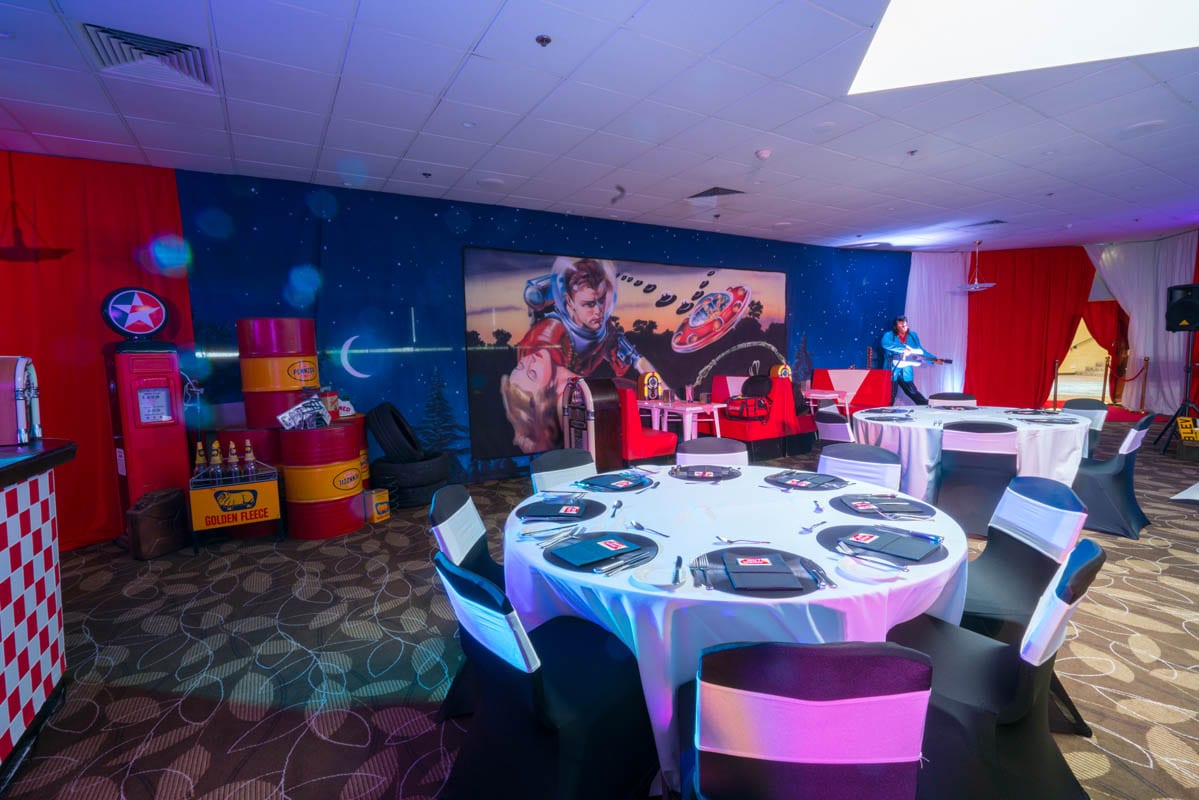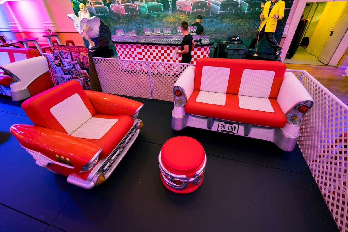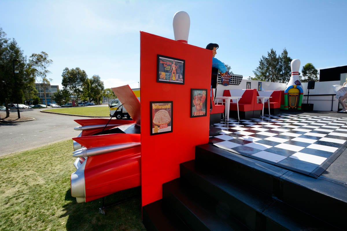 Auto shops and milk bars featured in many films of that era and here at Sydney Prop Specialists, our prop makers and stylists have put together a colourful assortment of props and painted backdrops that will transport your guests back to a 50’s auto shop and milk bar. With life size Elvis and Marilyn from that dress scene in “The Seven Year Itch”, giant ice-cream Sundays and bags of movie popcorn, car boots for beverages and food, petrol bowsers, hot rods and 44 gallon drums – the scene is set for your themed event..