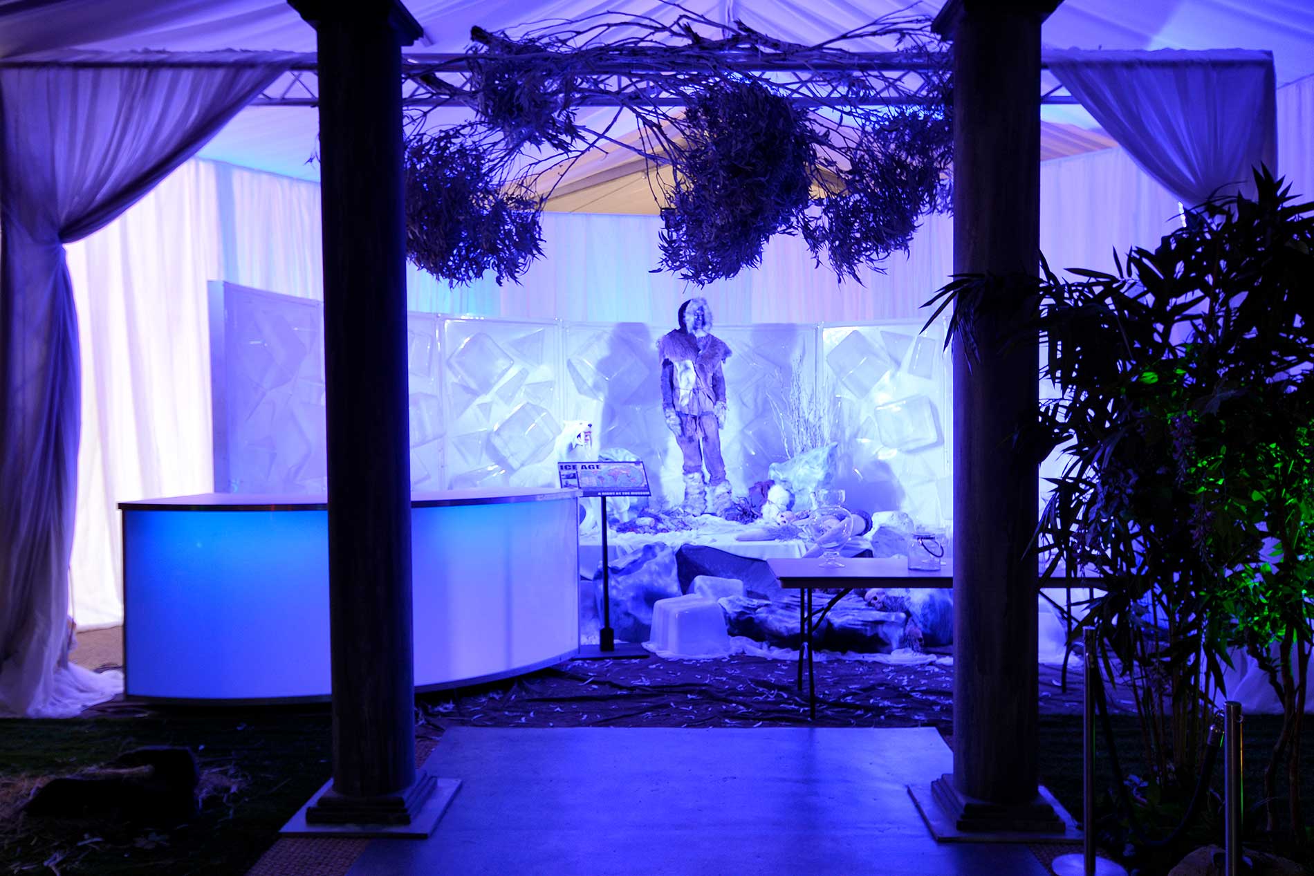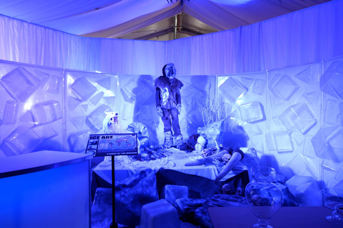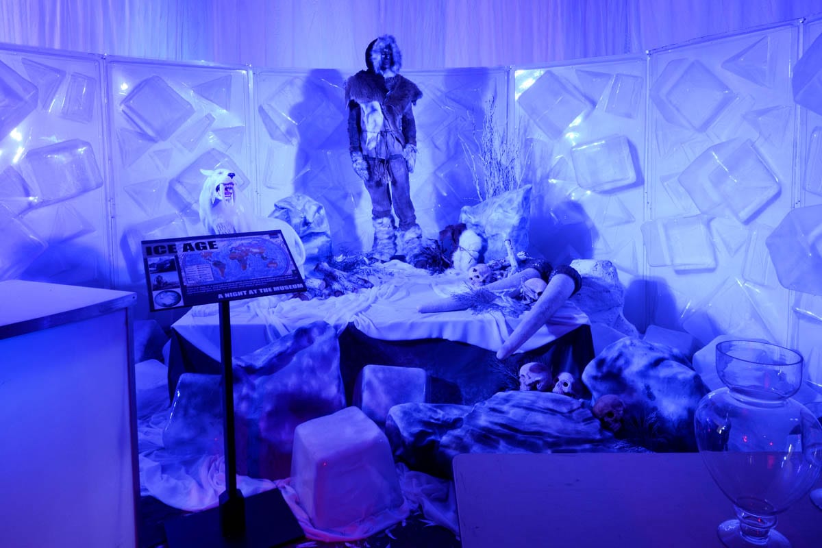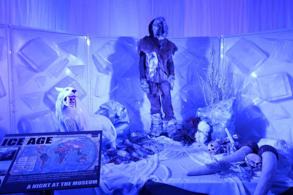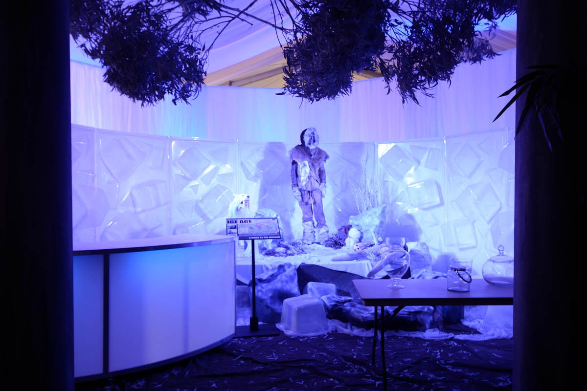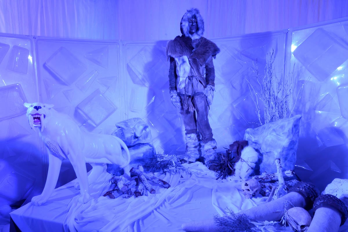 This theme features large walls of ice and a caveman mannequin with blue lighting to bring it to life. We also have boulders, backdrops and cut out animals..