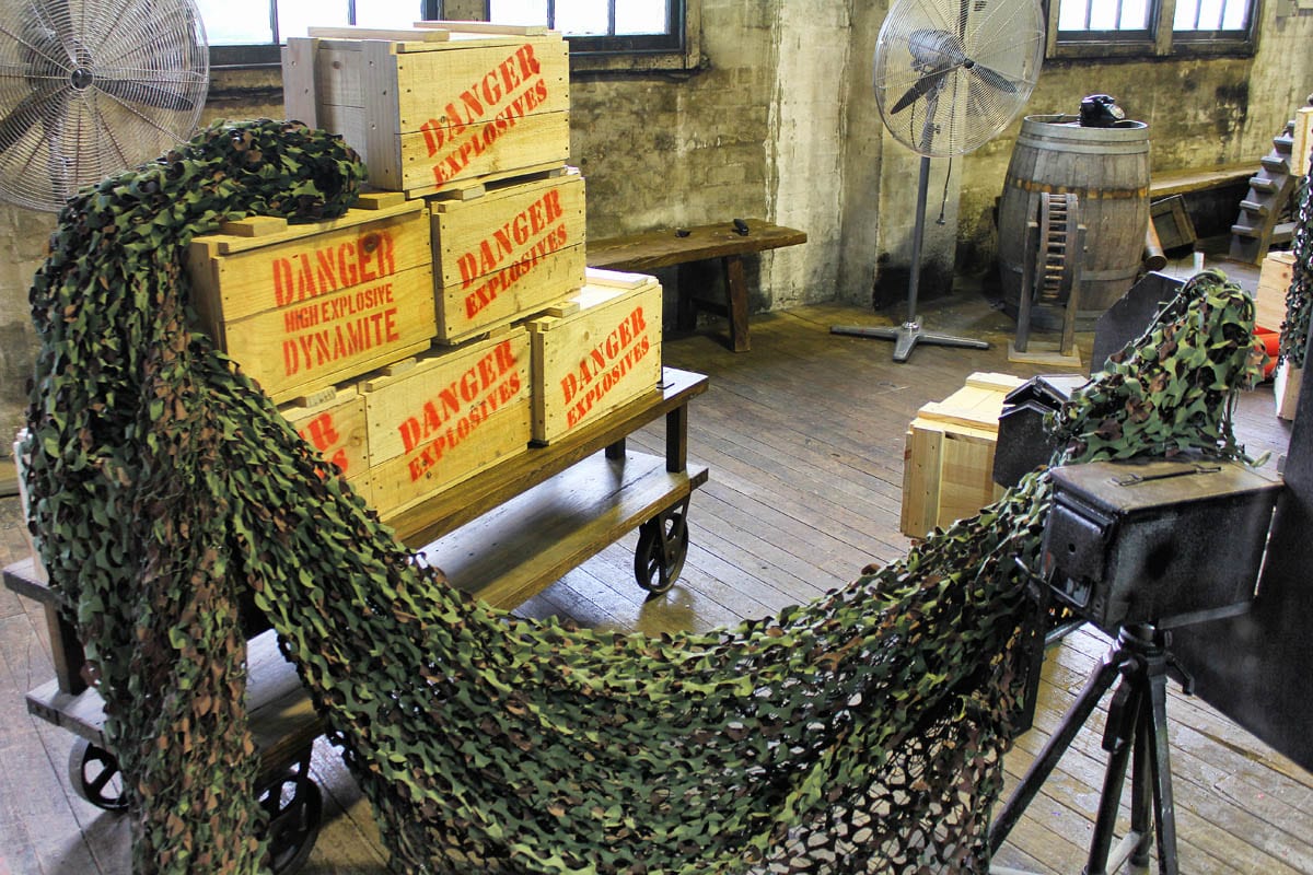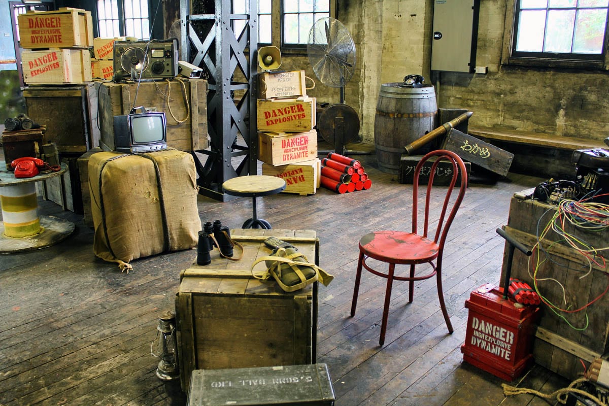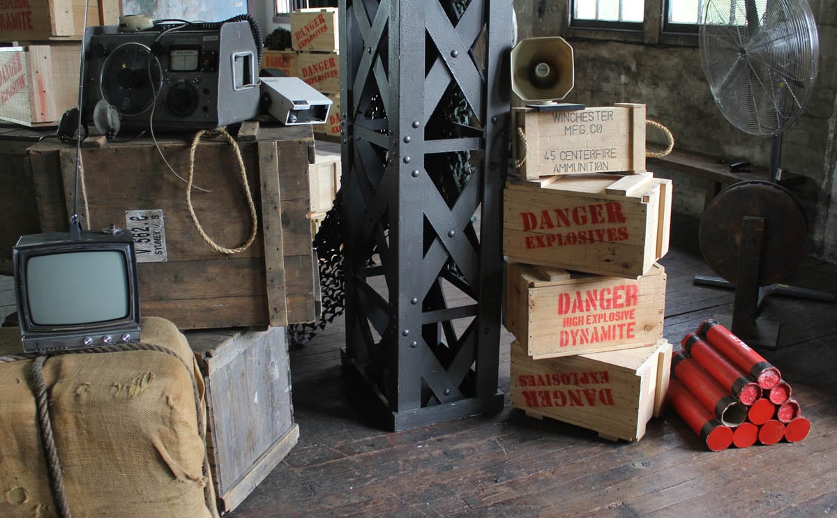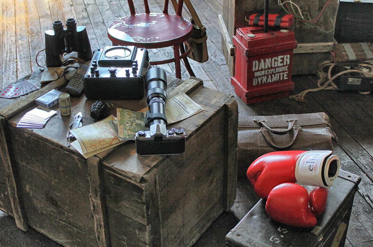 To carry off this theme you need circa 1940’s phones and typewriters, army crates and ammo boxes, medical supplies, army issue bedding, metal lockers, timber furniture, punching bags and old girders – and we have the corresponding props..
