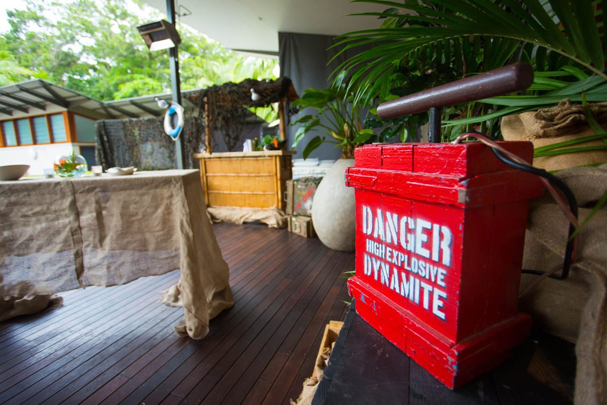 This could be a breakout room for training or a series of vignettes scattered around a large room for a gala dinner and presentation, with table centrepieces in the same theme. Of course all our props are available to hire as individual items – gas masks and dynamite are popular single items that can be used with other themes such as Super Hero.