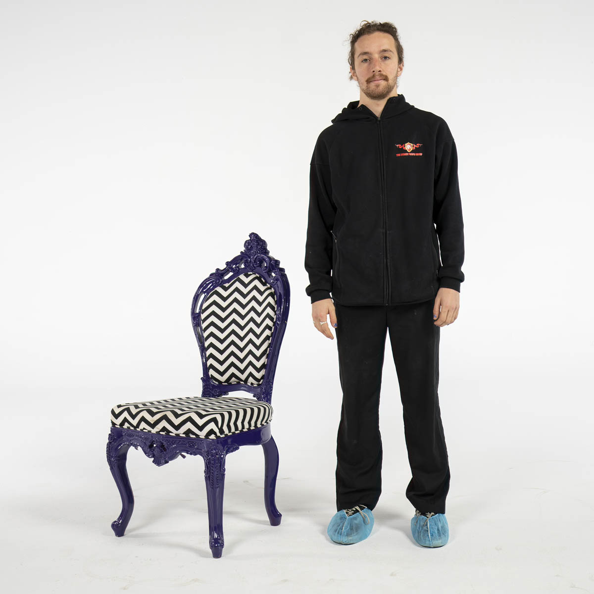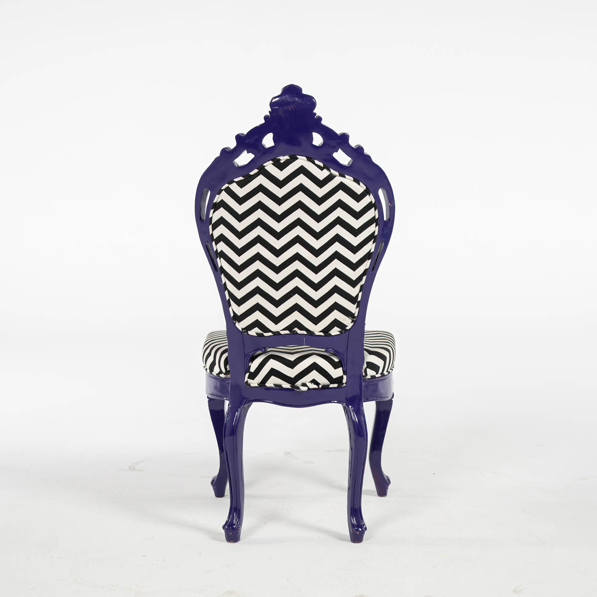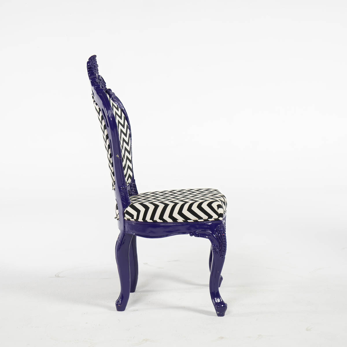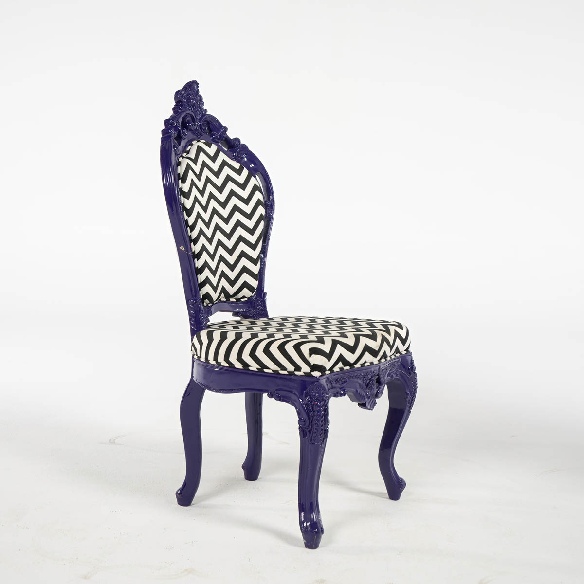 Alice Chair – Black and white zig-zag pattern on seat and back with purple frame chair