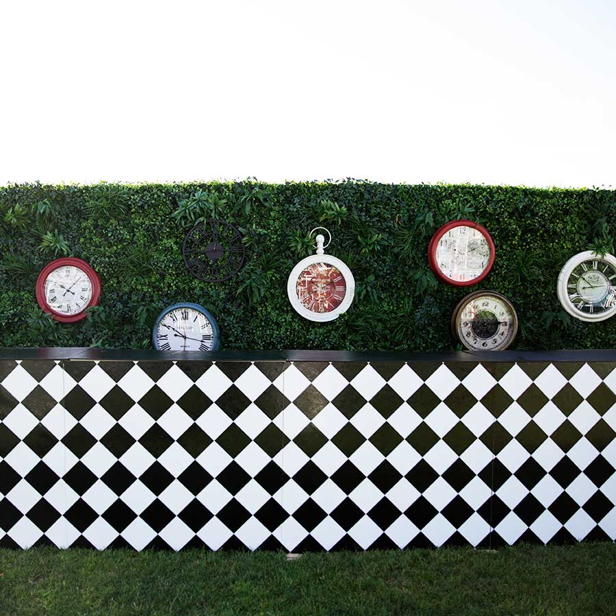 Note: harlequin bar, urns and wall clocks are not included. Comes with french braces and sand tubs.