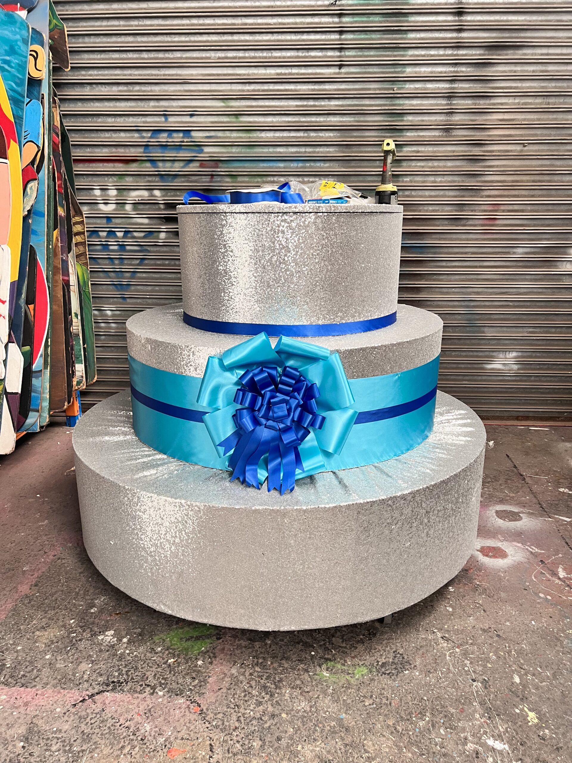 PLEASE NOTE: This Prop is now covered in Silver Sequins and can not be changed - ask staff for current ribbon design