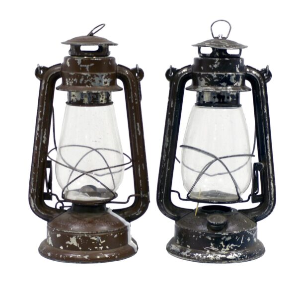 Rustic hurricane lantern in a variety of colours. (Non Working)