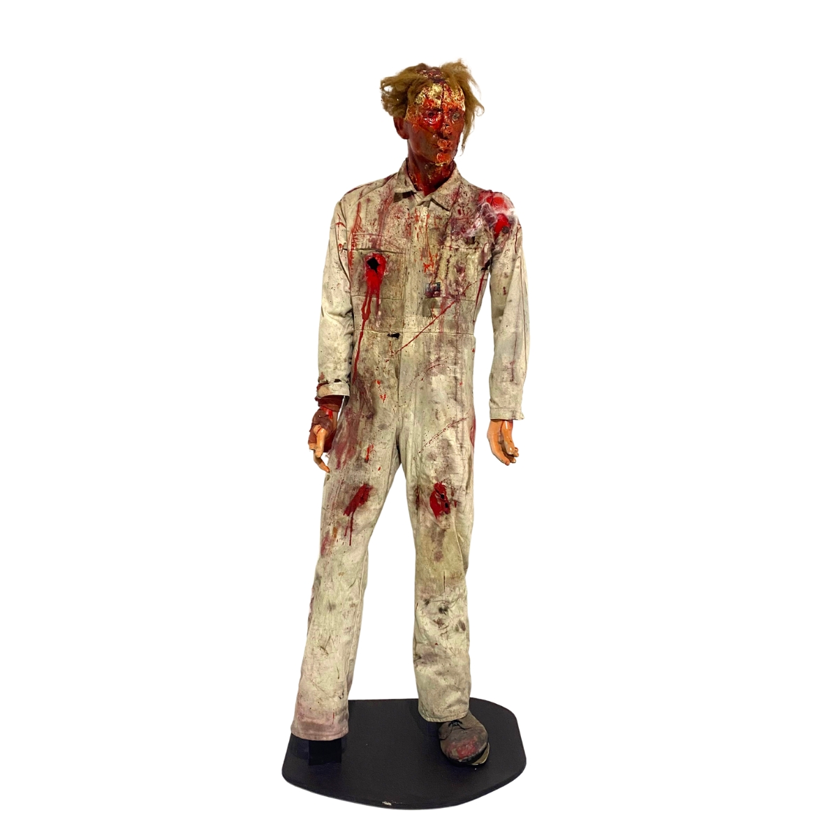 Life size horror – halloween doll. Jason – Fri 13th style wearing white overalls.