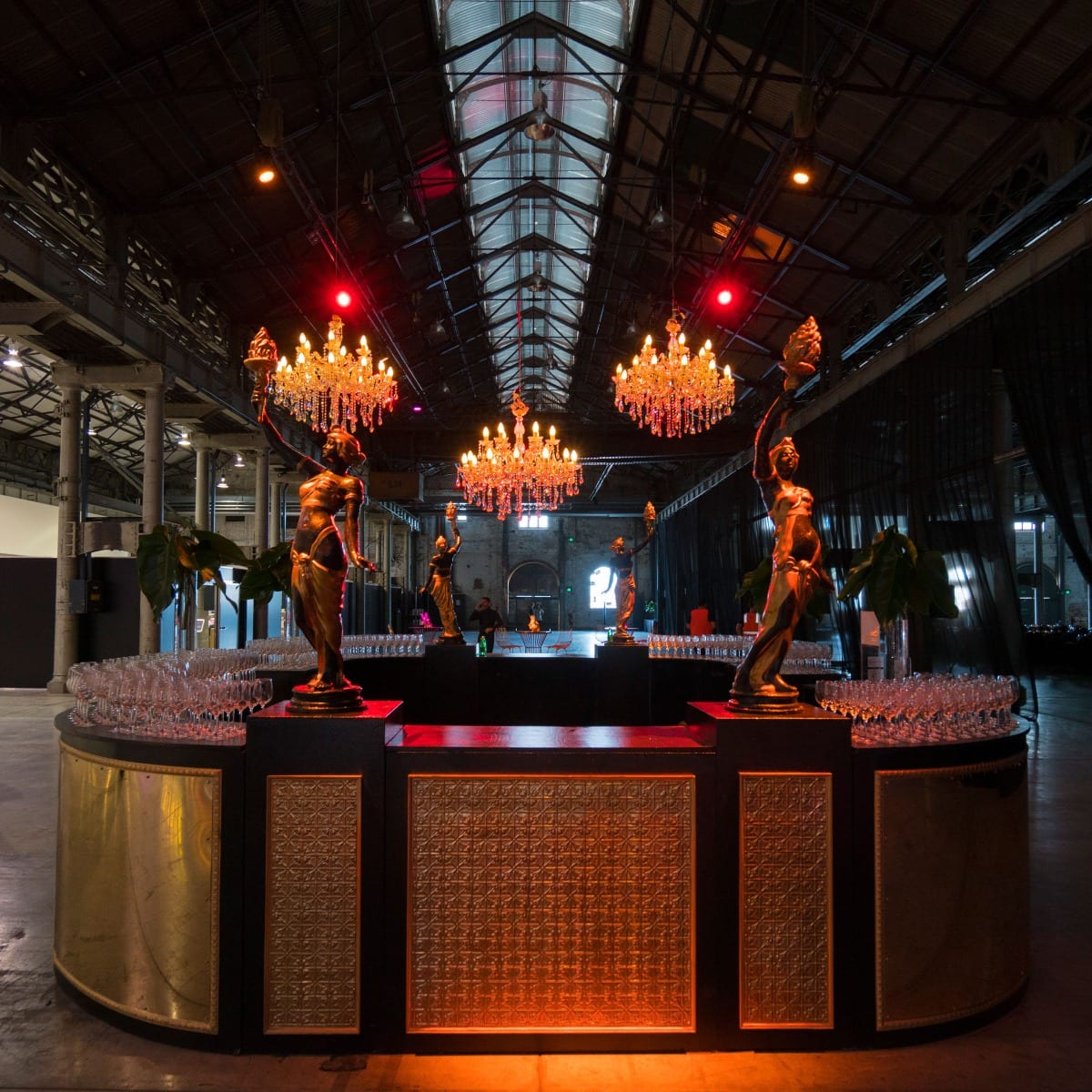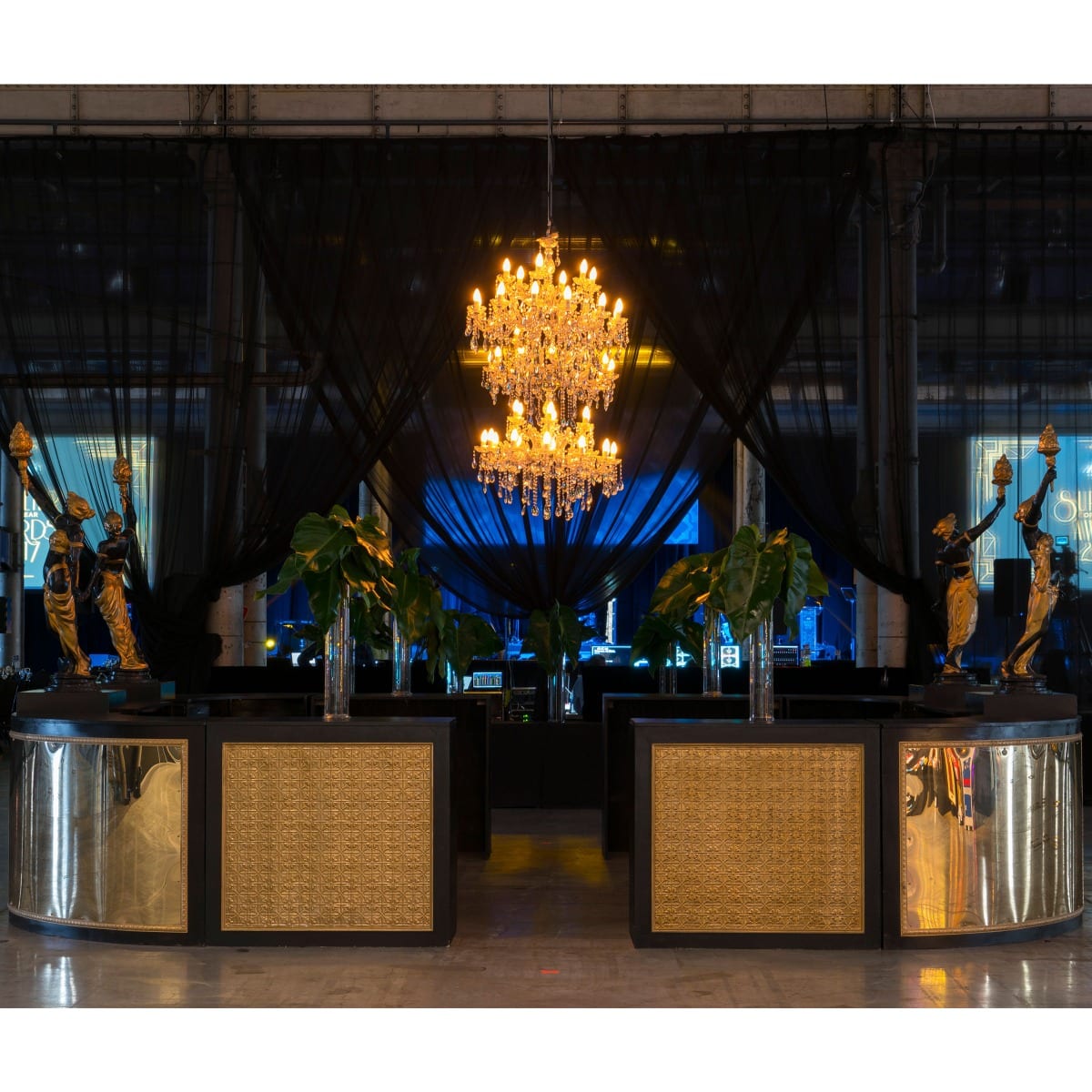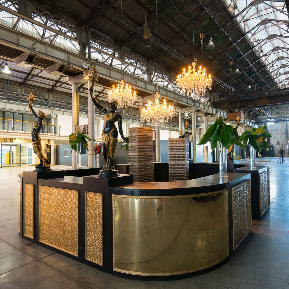 4 x 1/4 curved bars with gold mirror perspex facade