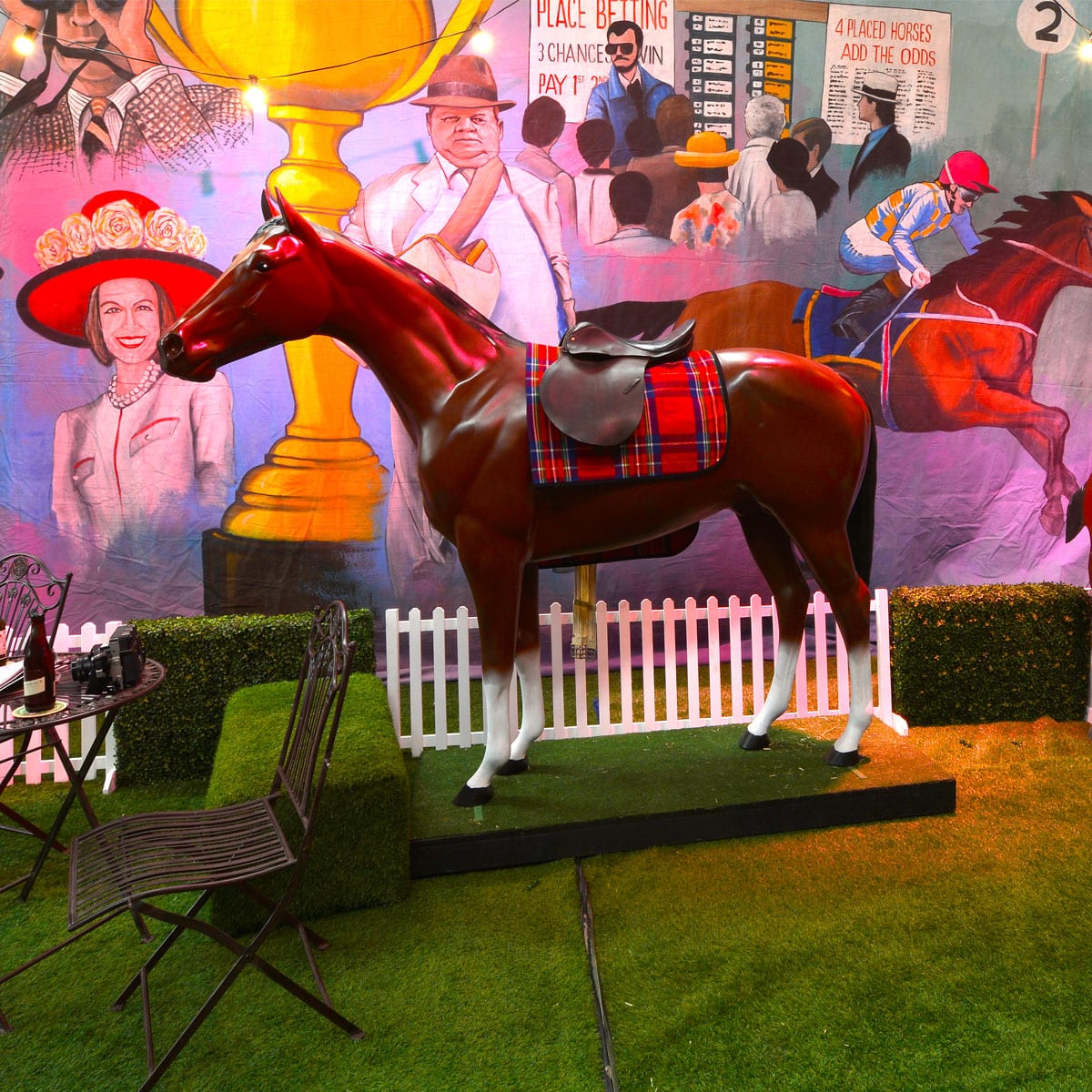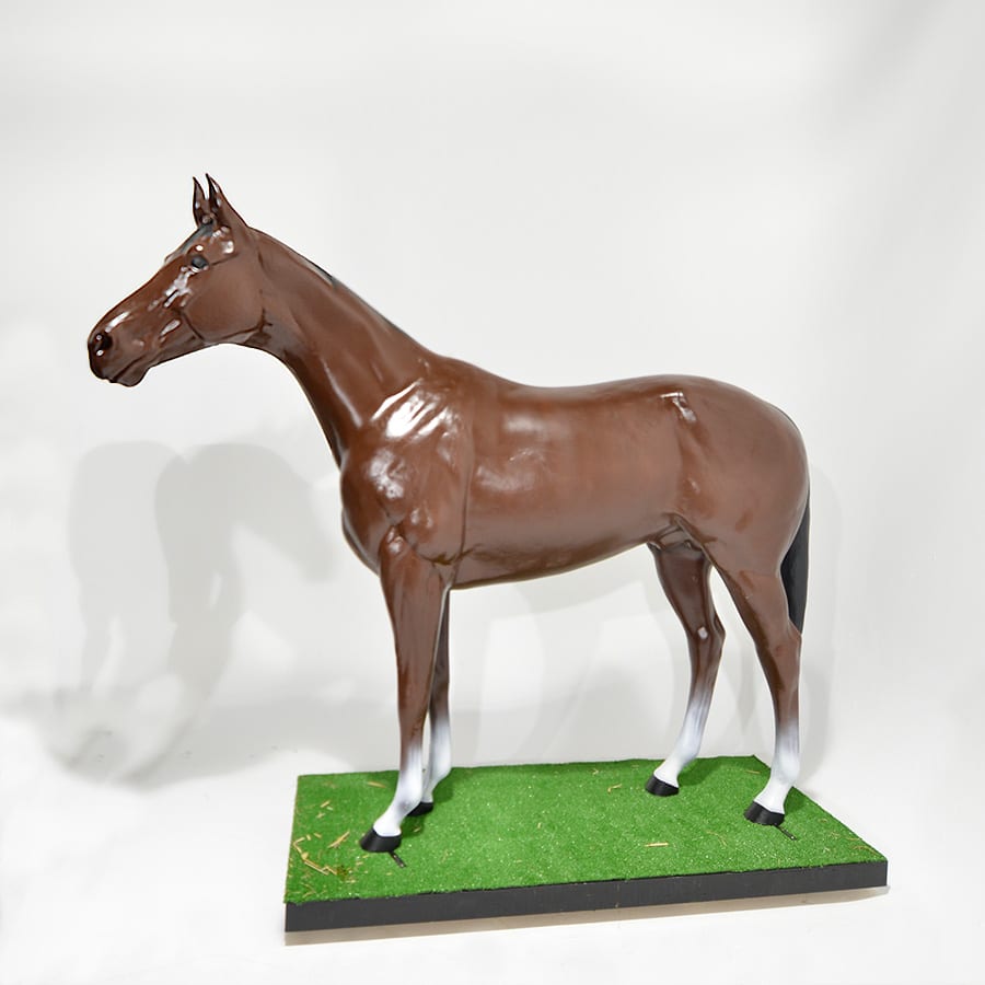 Life size brown horses made from reinforced fibreglass - on trucked platform
