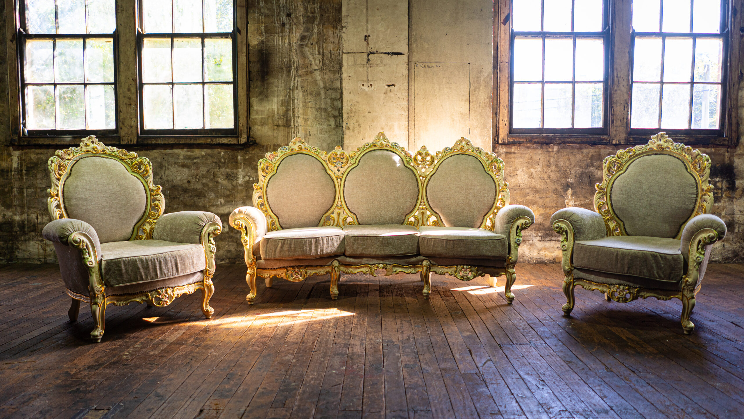 3 seat along with 2 armchairs
