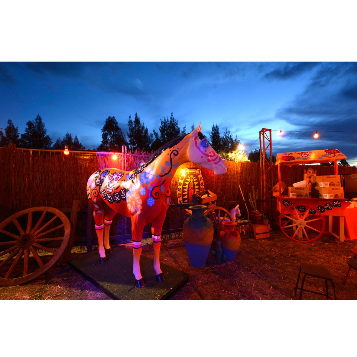 Colourful painted Mexican life size horse. Can be used with Mexican cart