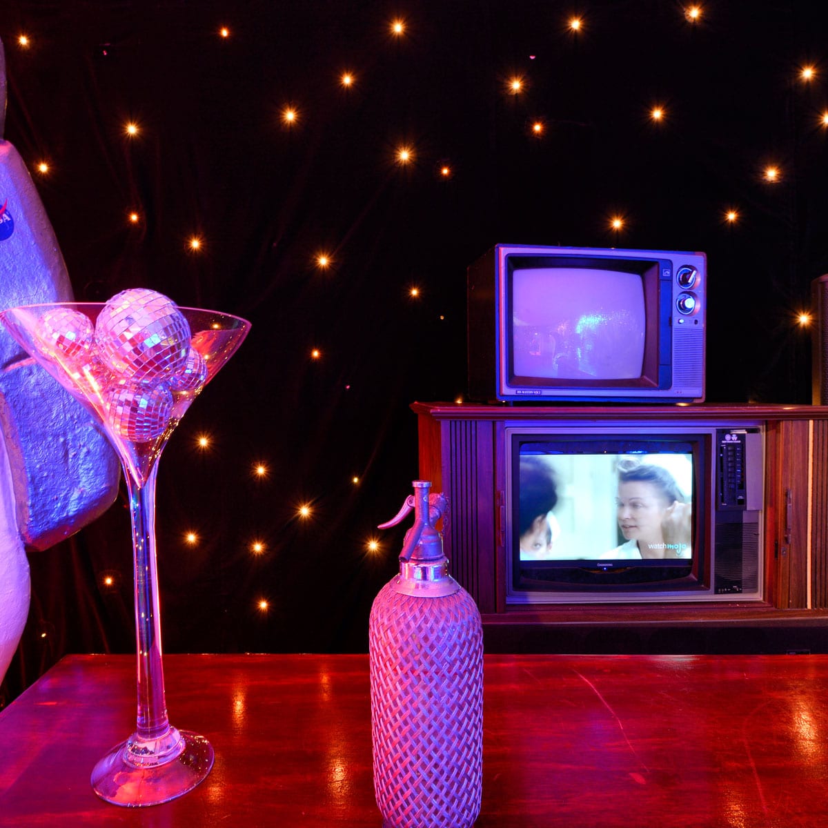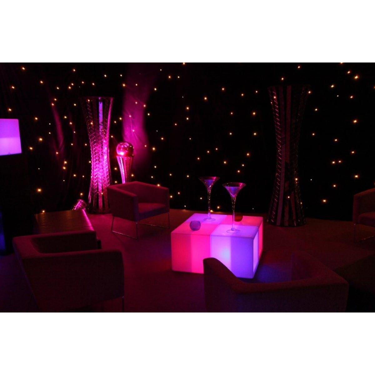 Star Cloth (3x6m runs) with LED lights to create "star" effect.