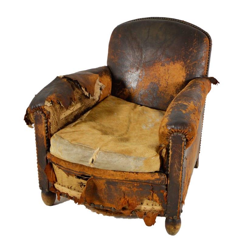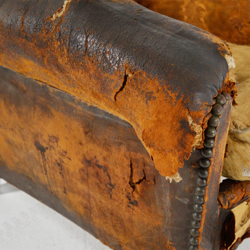 Worn Rustic Armchair, brown tonal leather