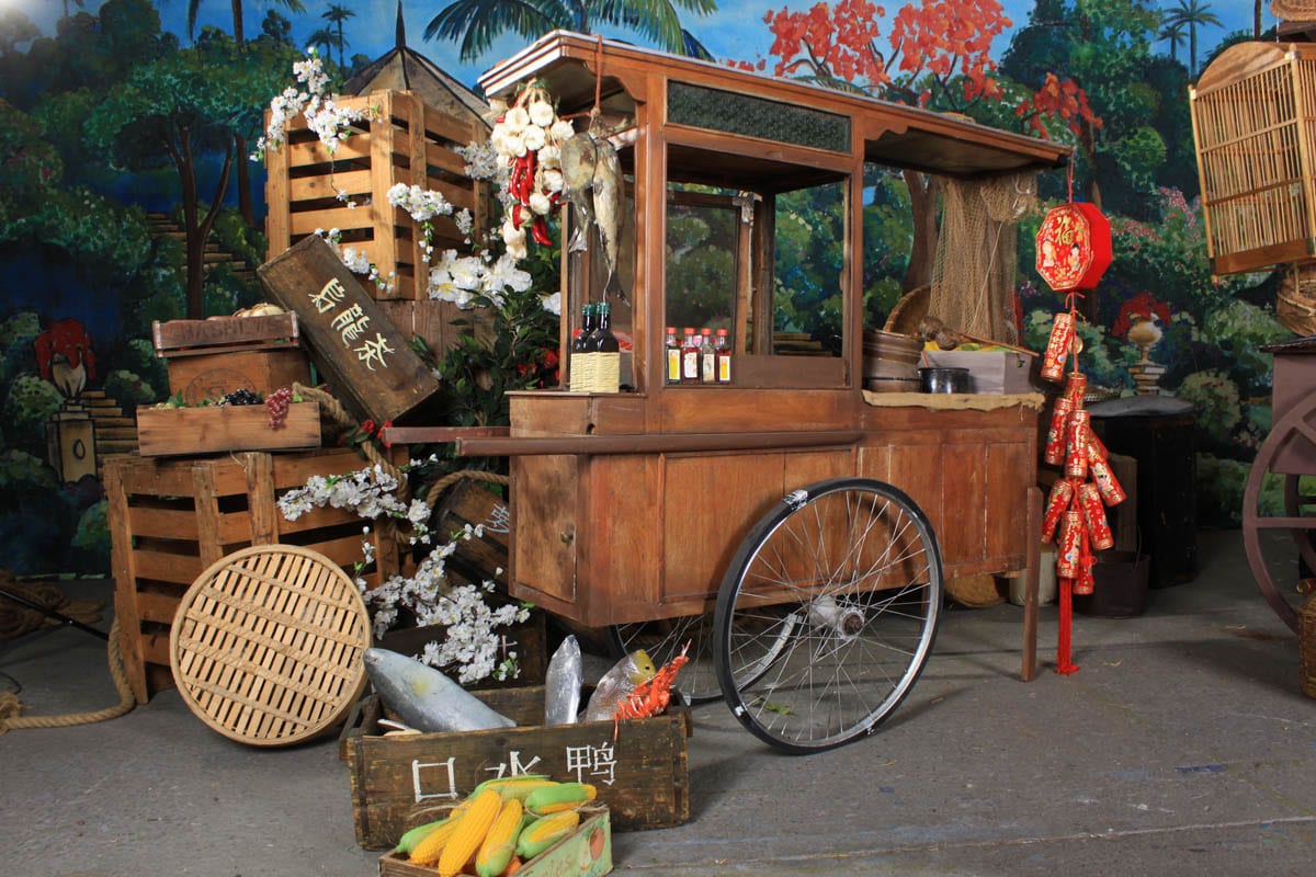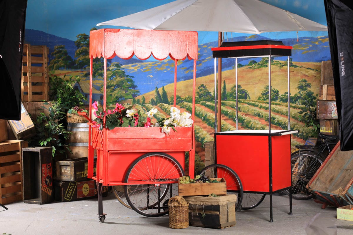 Our Food Service Carts are very popular items for popups, brand activations and food expos. We have rustic carts and barrows that look like authentic farm and market carts – great for food presentation and service. We also have a large range of painted carts that can be colour coordinated to your brand or product requirements. We also have industrial trolleys, low carts and wheeled platforms that are great for produce and product display. All of our wheeled carts, barrows and trolleys can be themed as seen in the Asian styled examples below – we can also theme them nautical for seafood. Have flowers to display? These rustic carts are the perfect tones to show off the colours of your produce!