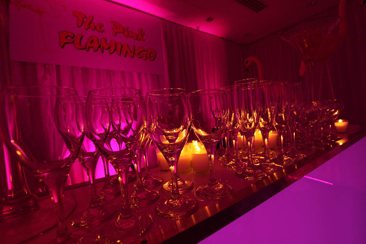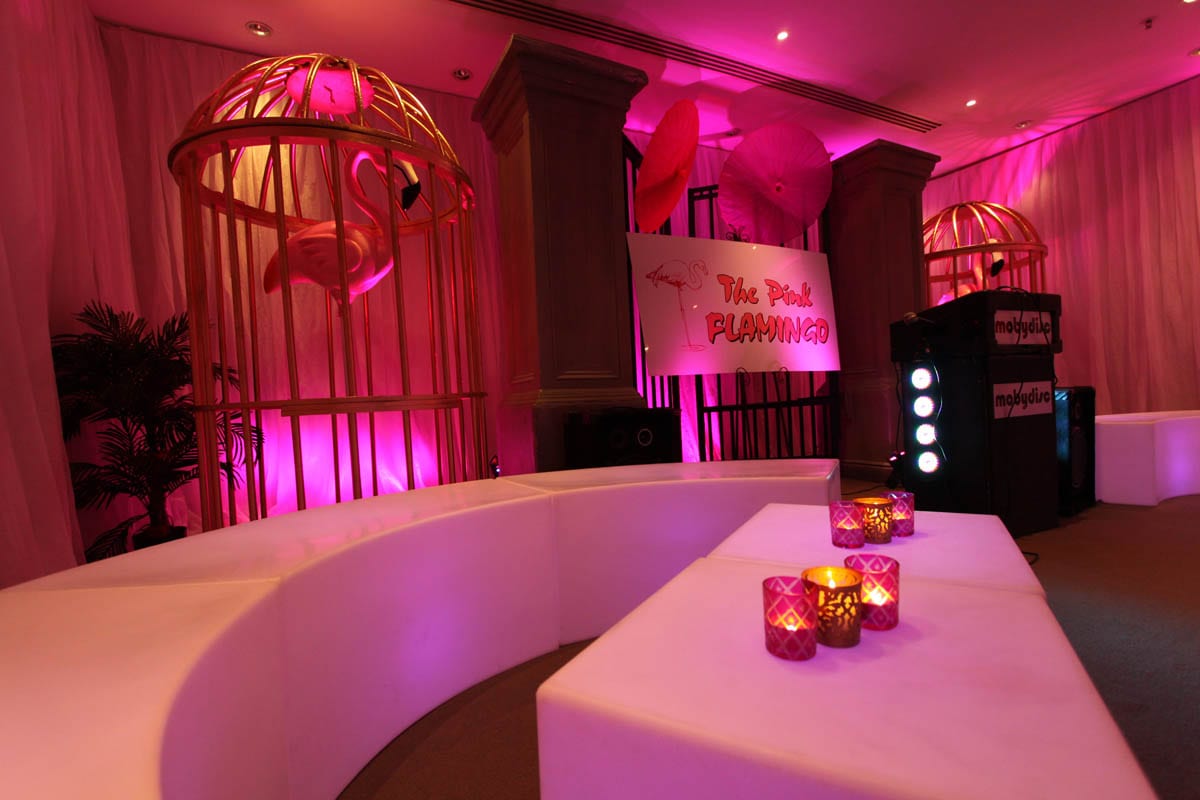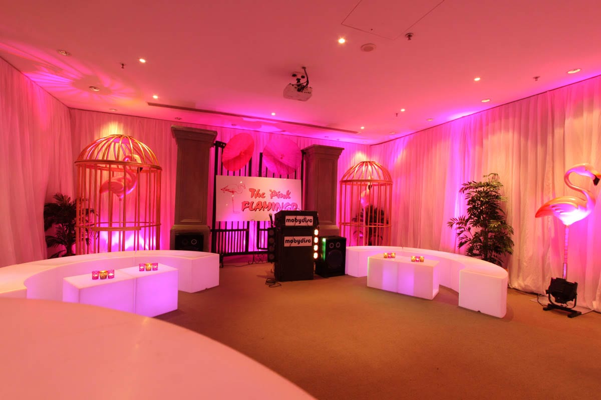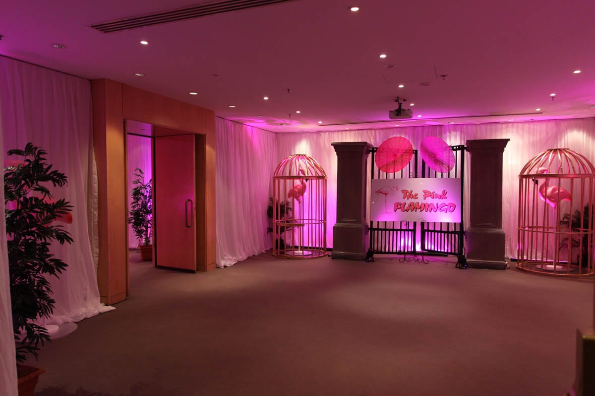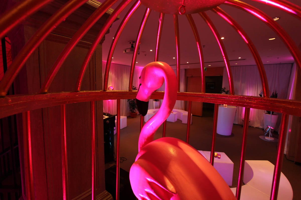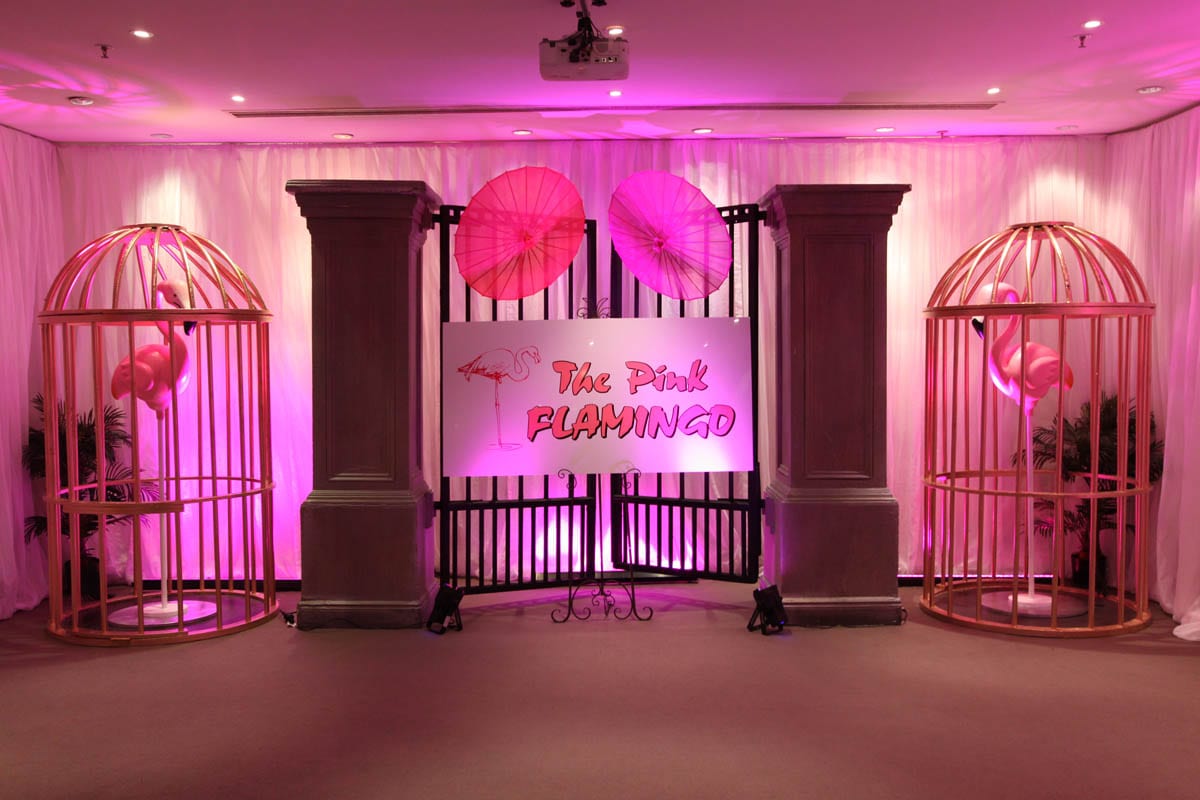 Creating a special dinner? Why not use a flower arch and red carpet to lead you to your table? Candles, lanterns, candelabras, lattice flats filled with roses… the list goes on of endless possibilities. Creating a Valentine’s Day event? Use martini glasses filled with rose petals and flicker candles to illuminate tables or perhaps use pink or red themed props like our flamingos.