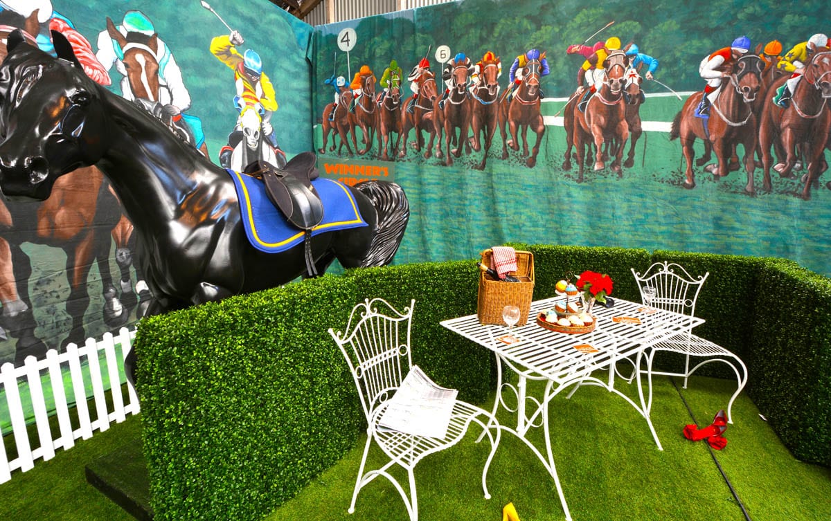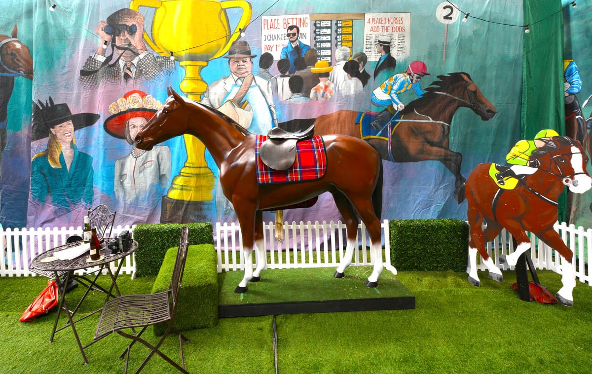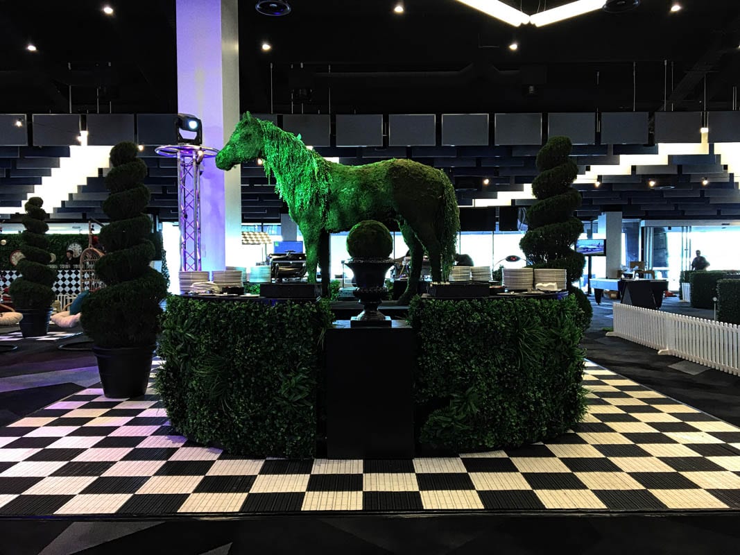 The options for this theme are endless. Create lavish gardens with lattice living walls, picket fences, hedges, topiary trees and large elegant urns with beautiful flower bouquets. Sip that bubbly whilst you watch the horses go by – we mean our horses! We have lifelike horse statues, whips, saddles and other horse cut-outs to really give your event the Melbourne Cup feel.